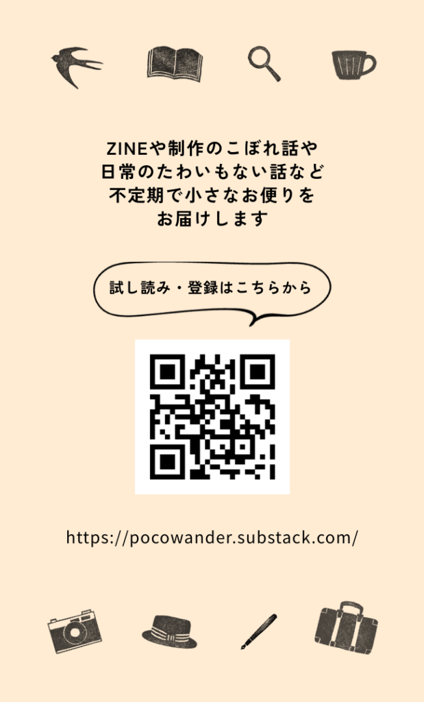 ZINEにpodcastにと、自分でもふと「私はいったい何をやっているのだろう?」と首をかしげることがあるので、片面はざっくりとした自己紹介にし、もう片面をニュースレター案内にしました。